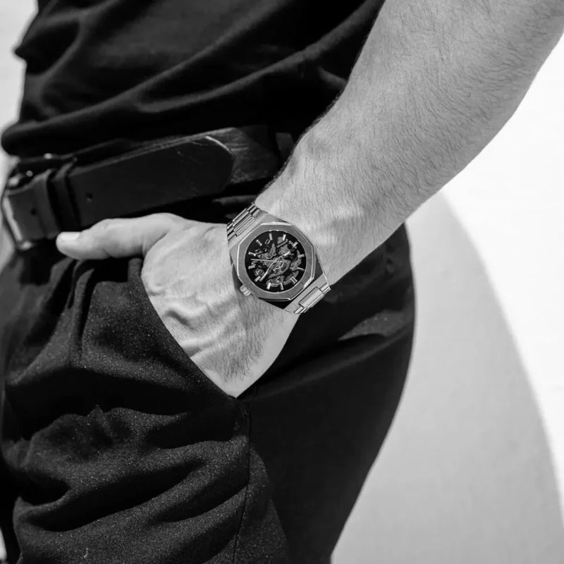 Son ton neutre et sophistiqué reflète l’énergie vibrante des grandes villes, alliant élégance et une touche d’audace, grâce à son design ouvert : une œuvre qui révèle avec maîtrise les mouvements automatiques dans leur essence.